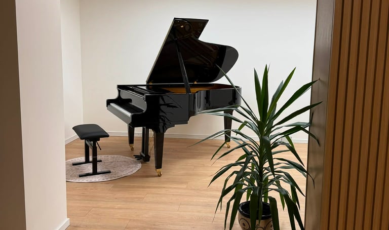 Studijoje ypatingą dėmesį skiriame garso kokybei ir muzikinei patirčiai. Didžiuojamės, kad pamokos vyksta grojant aukštos kokybės vokiškais „Schimmel“ ir „Seiler“ pianinais bei fortepijonu.
